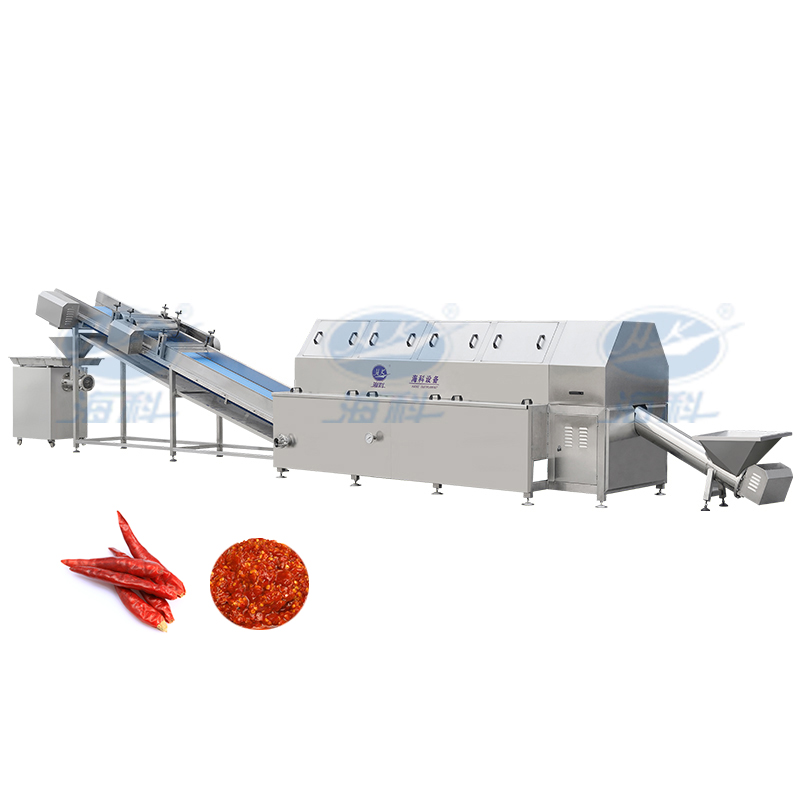 本設備外觀精美機構簡單,物料均勻連續進出,速度變頻可調,溫度采用電子恒溫,溫度可調、水位自動可控,使用安全、衛生方便、節能環保,外殼全保溫,廣泛適用于辣椒、黃豆等多種物料的煮制。