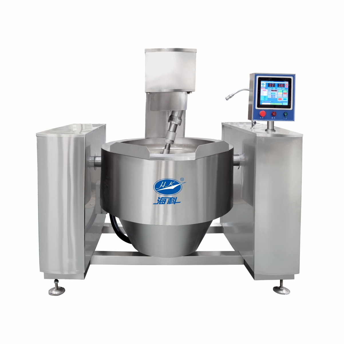 電磁搖鍋采?電磁加熱原理,具有微電腦控溫技術(shù)、智能補(bǔ)溫技術(shù),采??星式刮底攪拌,不粘鍋?攪拌死?,操作簡便輕觸按鈕即可實(shí)現(xiàn)鍋體翻轉(zhuǎn)及攪拌。本機(jī)可?動(dòng)精確控制溫度、攪拌速度及加熱時(shí)間,可解決在加熱過程中各?藝參數(shù)依靠操作者經(jīng)驗(yàn)來控制產(chǎn)品質(zhì)量的問題,避免在加?過程中?為因素對產(chǎn)品質(zhì)量產(chǎn)?的影響,提??藝可控性,保證產(chǎn)品質(zhì)量。